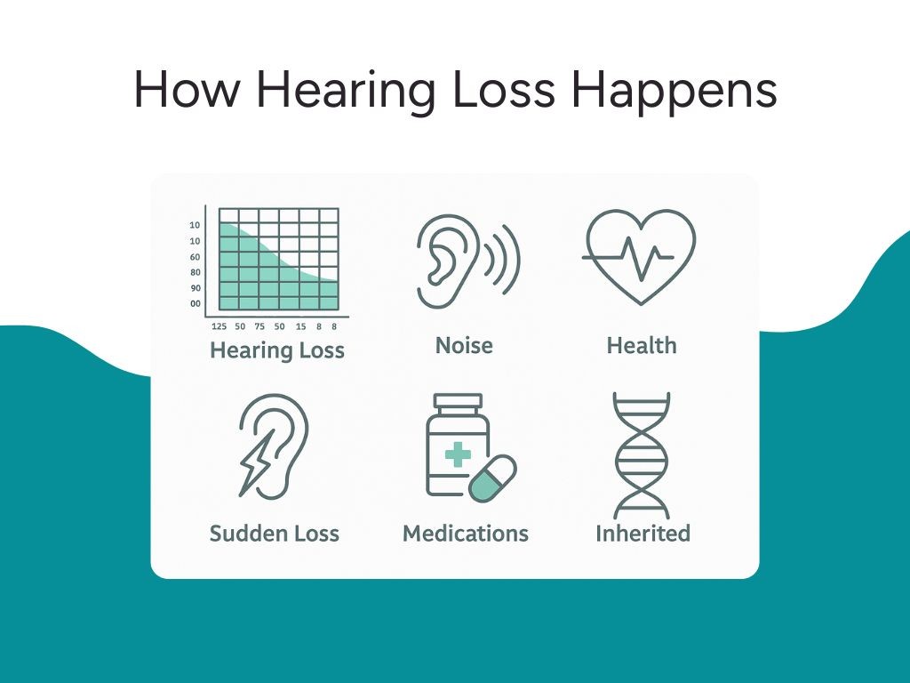 Hearing challenges happen when there are interruptions to this process. Hearing loss can be caused by several things, including health challenges, medication side effects (such as ototoxic medication used in cancer treatment), loud noise exposure, and genetic predispositions.